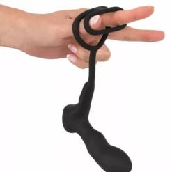 Dubbel genieten doe je met deze Cockring met Anaalplug en vibratie. Je brengt de rekbare cockringen om je penis en balzak en de plug in je anus. Het materiaal is rekbaar zodat het op elke man zal passen. De cockringen houden de penis hard en ook houden ze de bloedsomloop tegen waardoor je langer van je erectie kunt genieten en je orgasme nog intenser is. Wanneer je de anaalplug hebt ingebracht kun je genieten van de 10 gevarieerde vibratiestanden. De flexibele verbindingsstaaf nestelt zicht dicht tegen het perineum en zorgt voor extra stimulatie. Maak hem na gebruik eenvoudig schoon met een toycleaner.