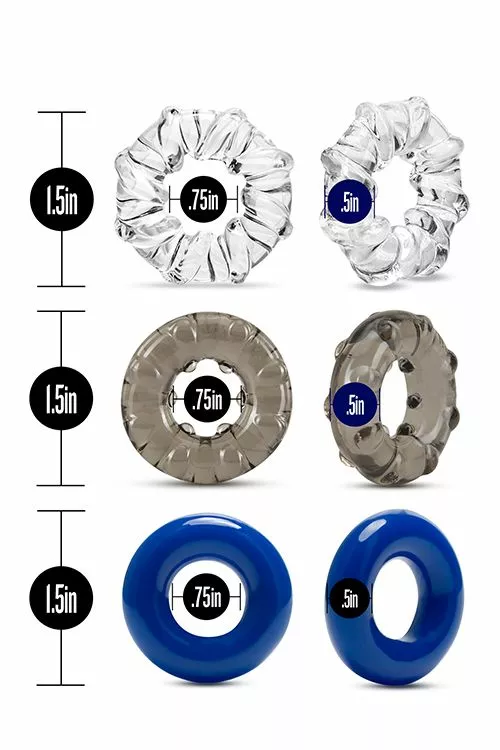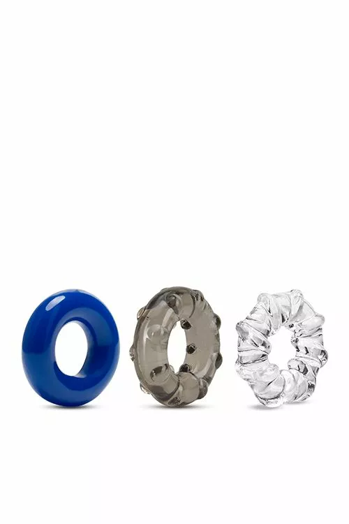 Deze cockringen set Stay Hard Triple Stretch bevat 3 verschillende cockringen. Ze hebben niet alleen een andere kleur maar ook een verschillende binnenring voor steeds een andere stimulatie. De ringen zijn rekbaar en passen dus altijd. Gebruik een cockring om ervoor te zorgen dat je erectie extra hard is en ook lang aanhoudt. Je kunt de ringen los van elkaar gebruiken maar ook samen. Hierdoor zorg je ervoor dat jij en je partner extra lang kunnen genieten. De cockringen zijn gemaakt van TPE en dus zeer duurzaam. Je kunt ze ook zonder problemen in bad of onder de douche gebruiken.
