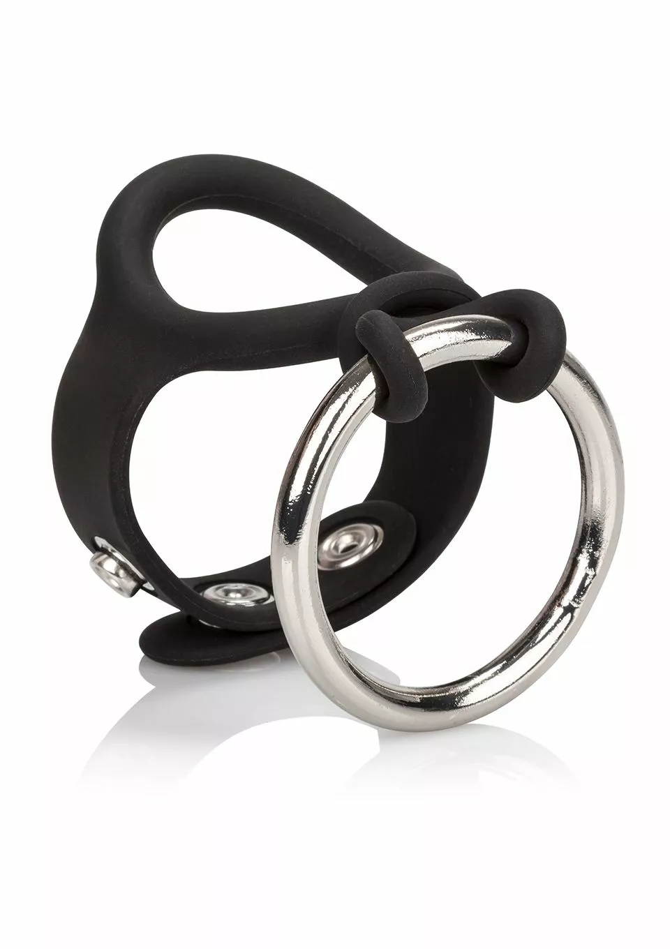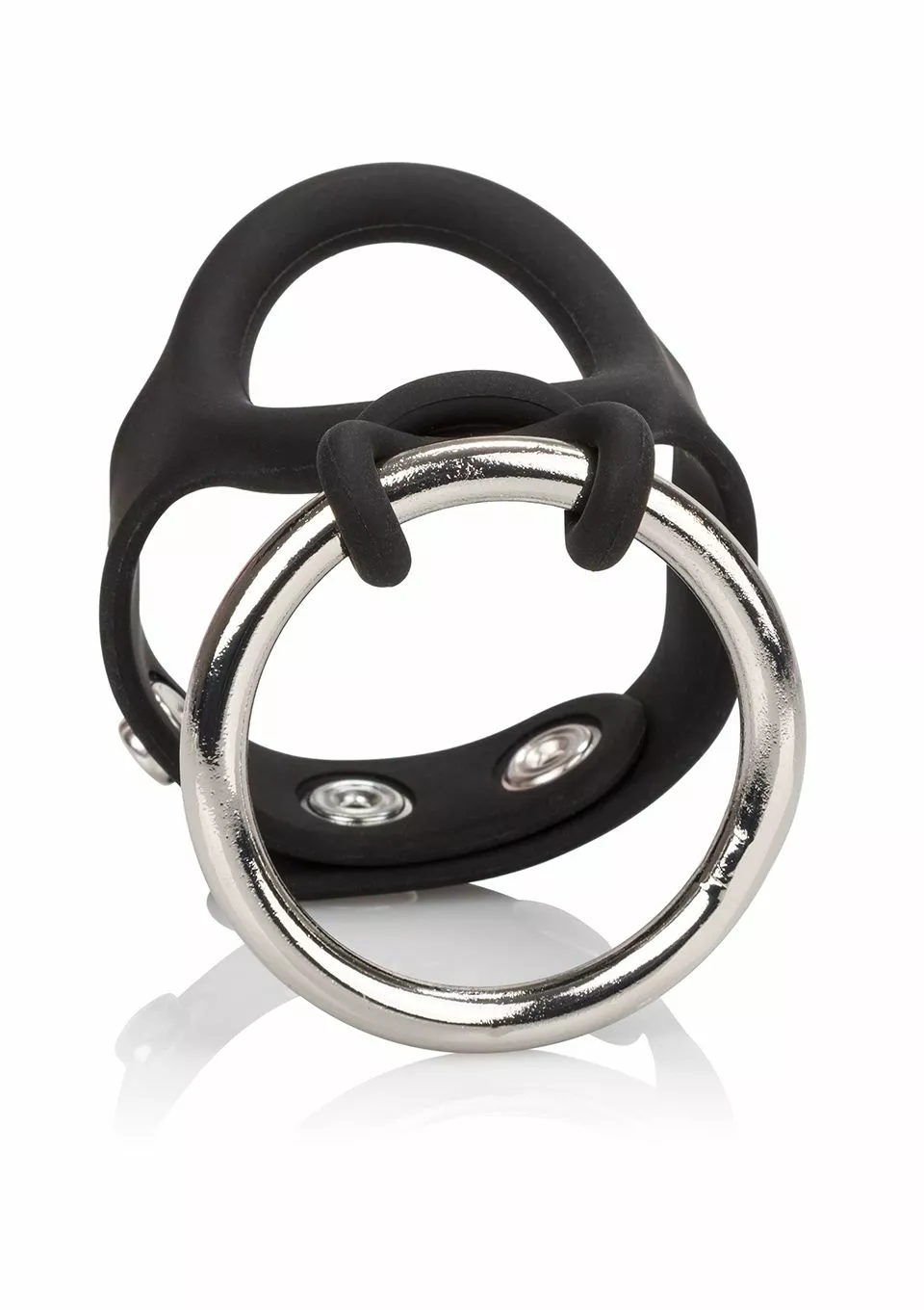 Met deze unieke ring is het nog meer pret tussen de lakens. Hij zal de ondersteuning geven die jij nodig hebt en zorgen voor een ultiem orgasme die jij nooit weer zal vergeten. Hij is gemaakt van heerlijk zacht siliconen en van hoogwaardig rvs. Ook is het mogelijk om de metalen ring te vervangen door de meegeleverde siliconen ring wanneer jij dit wenst. Het siliconen gedeelte wat om de penis en ballen heen gaat is verstelbaar met 3 drukknoopjes voor de perfecte pasvorm. Verder is het siliconen gedeelte rekbaar zodat hij eenvoudig om is te doen. Diameter van de stalen ring is 4.5 centimeter.