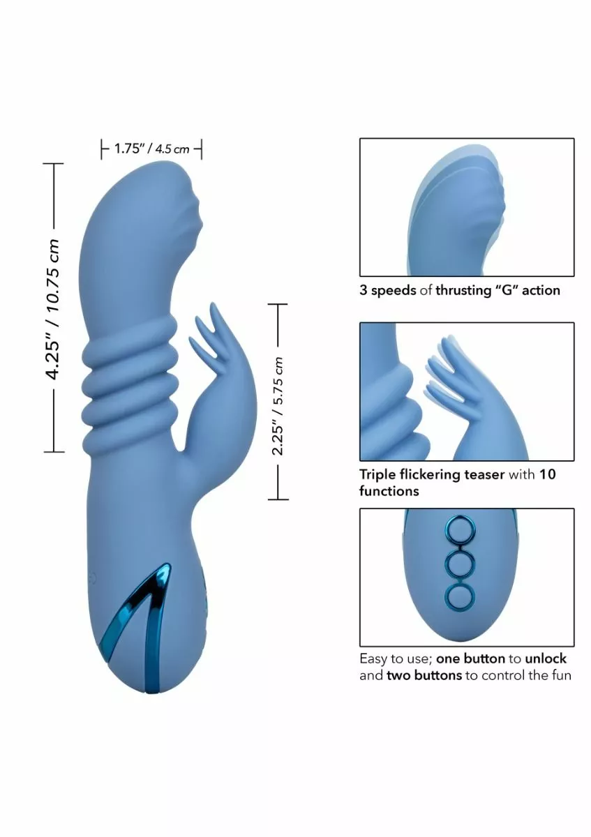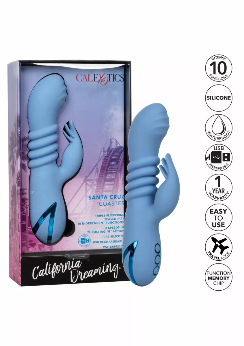 De Stotende Vibrator Santa Cruz Coaster is een stotende vibrator die jouw de stuwende beweging geeft waar jij naar op zoek was. Het speeltje wordt geleverd met een clitoris teaser die flikkert bij een onafhankelijke beweging. De schacht van de vibrator is licht gebogen voor een gerichte g-spot stimulatie. Met 3 snelheden en 10 standen heb jij heel wat mogelijkheden om mee te experimenteren.