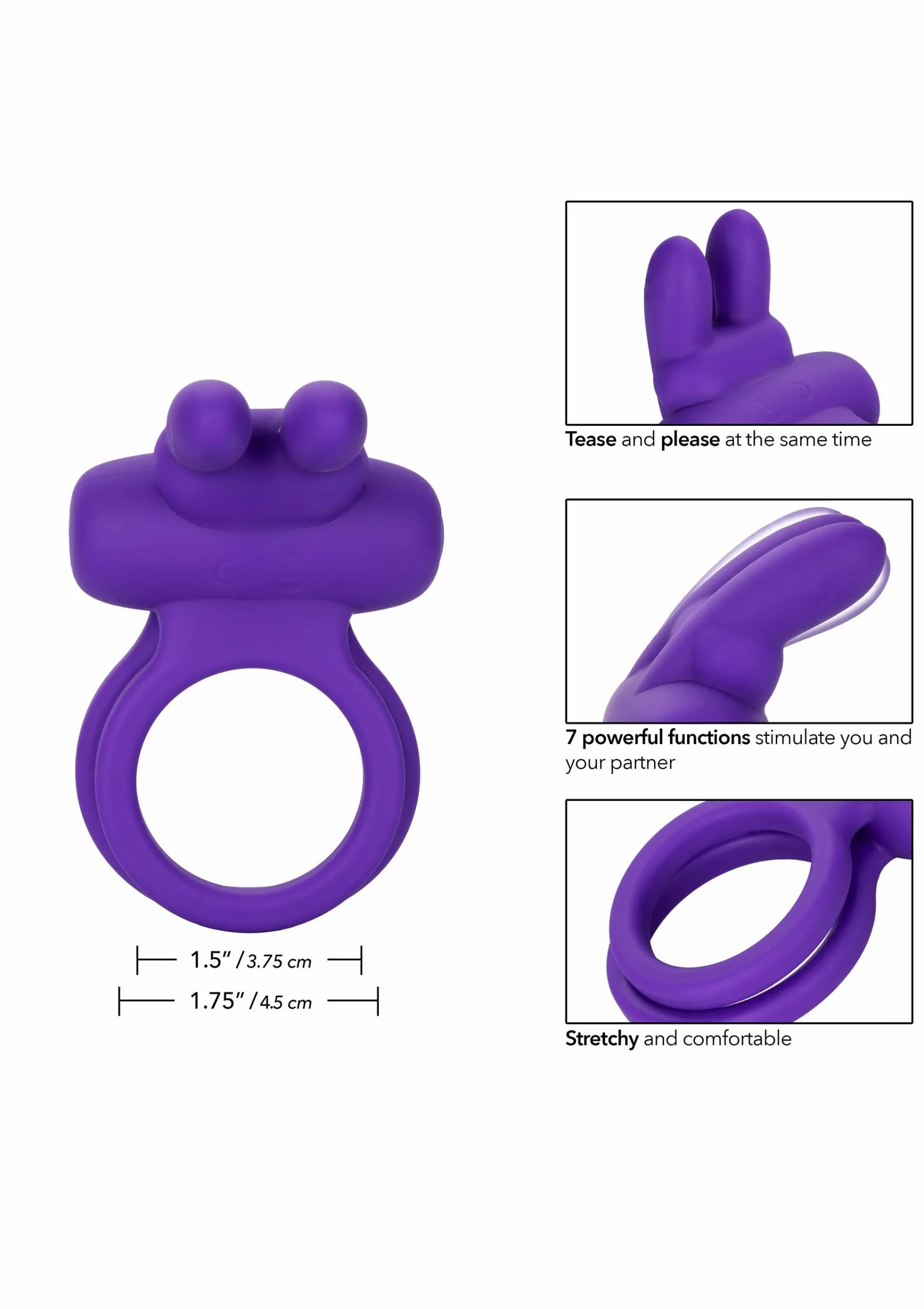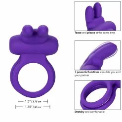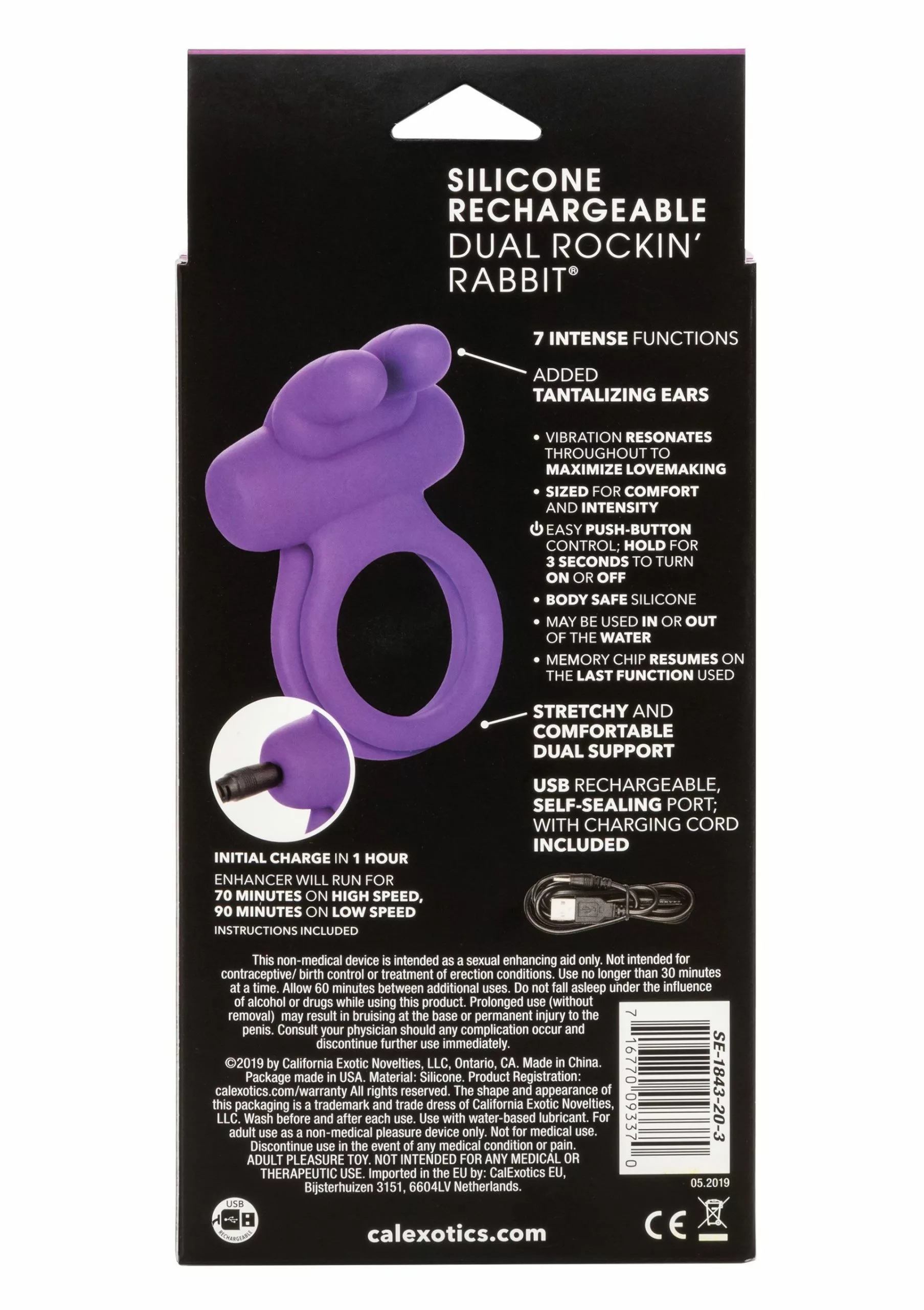 Geniet samen een nacht tussen de lakens met deze speciale Vibrerende Cockring Rocking Rabbit Enhancer . De vibrerende cockring is rekbaar zodat het makkelijk om de penis gebracht kan worden. De clitoris stimulator is in de vorm van een rabbit waarvan zijn oortjes bij diepe penetratie de clitoris van je lover zal strelen voor extra stimulatie. Met wel 7 diverse standjes brengt deze cockring jullie samen tot overweldigende orgasmes waar je knieƫn van zullen trillen. De memorie chip zorgt ervoor dat, wanneer je de cockring weer gaat gebruiken jullie favoriete standje in actie komt zodra je de bullet weer aanzet. De cockring heeft een dubbele ring die de man rond zijn ballen en penis draagt. De cockring is oplaadbaar met het meegeleverde usb kabeltje. De toy is waterproof zodat jullie hem ook in de badkamer kunnen gebruiken. Na gebruik is hierdoor de Vibrerende Cockring ook eenvoudig te reiniegn. Gewoon met water, een milde zeep en gevolgd door een toycleaner.