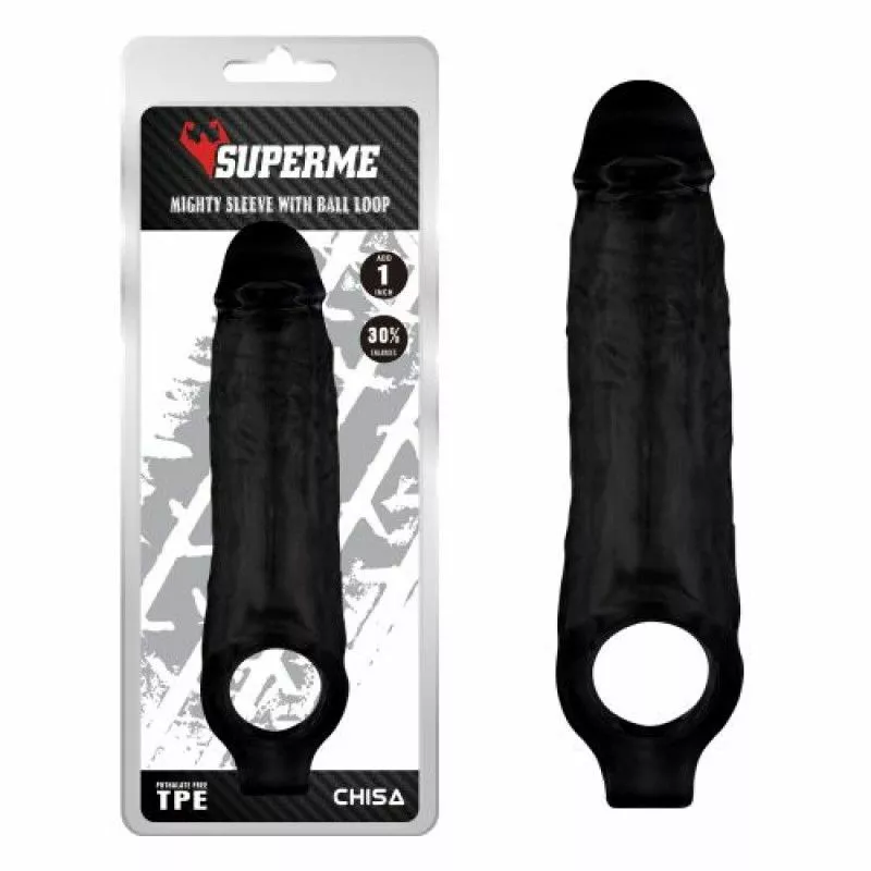 De Penissleeve Guaina Mighty Loop van Chisa is een realistische penissleeve die de penis vergroot en de erectie zal verlengen. De penissleeve is gemaakt van elastische TPE materiaal. Schuif de penis in de huls en doe de ring om je ballen. Hij heeft een lengte van 22 cm en een diameter 4.7 cm. Maak hem na gebruik goed schoon met een toycleaner.