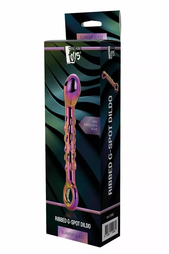 Ben jij voor glamour en glitter? Ga dan voor deze schitterende Geribbelde G-Spot dildo Glamour Glas van Dreamtoys. Deze mooie g-spot dildo heeft een gebogen vorm voor gerichte g-spot stimulatie en een geribbelde schacht voor nog meer stimulatie. De kleur heeft wel iets weg van een discobal. Met de handige trekring is de dildo perfect te sturen naar alle voor jou bekende en fijnste plekjes. Reinigen is zo gedaan. Spoel de G-spot dildo om onder de warme kraan en gebruik een milde zeep en een toycleaner.