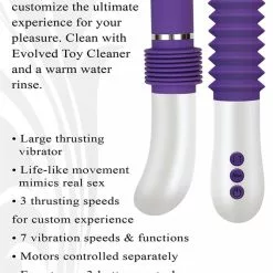 Een vibrerende vibrator is heerlijk, maar een vibrerende en stotende vibrator is nog veel lekkerder! De Infinite Thrusting stotende vibrator van Evolved Novelties geeft je het levensechte gevoel van penetratie. Laat je fantasie de vrije loop terwijl de Infinite Thrusting zacht of krachtig in je stoot. De schacht is gemaakt van zacht siliconen materiaal en het handvat van stevig ABS. Ontdek 3 stootsnelheden, 7 vibratiesnelheden en 3 vibratiefuncties. De verschillende functies zijn zowel tegelijk als afzonderlijk van elkaar te gebruiken en makkelijk te bedienen met de 3-knops bediening op het handvat. De vibrator voelt en beweegt als een echte penis en heeft een stootlengte van 8,9 cm. De Infinite Thrusting is na gebruik oplaadbaar met bijgeleverde USB-kabel en spatwaterdicht.