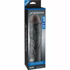 De Fantasy X-tensions Mega 3 Extension Black: dat is groot plezier voor twee! Alles waar u maar van droomt – langer, dikker, steviger of dieper – wordt in een handomdraai mogelijk met deze penisverlenger! Het zachte en flexibele materiaal sluit naadloos aan op uw lichaam en is in elke gewenste lengte bij te snijden.