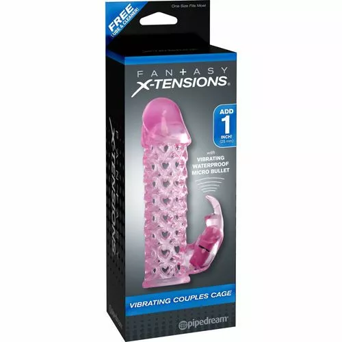 Met deze penis sleeve heb je het perfecte middel in handen om jouw erectie flink op gang te brengen. Deze sleeve heeft op de top een opening en op de schacht een clitoris stimulator. Met de vibratie krijgt de penis de stimulans om tot erectie te komen. De lengte van deze Fantasy X-tensions Vibrating Couples Cage is 15,8 cm en de diameter van de binnenzijde is 3,1 cm. Wordt geleverd inclusief batterijen.