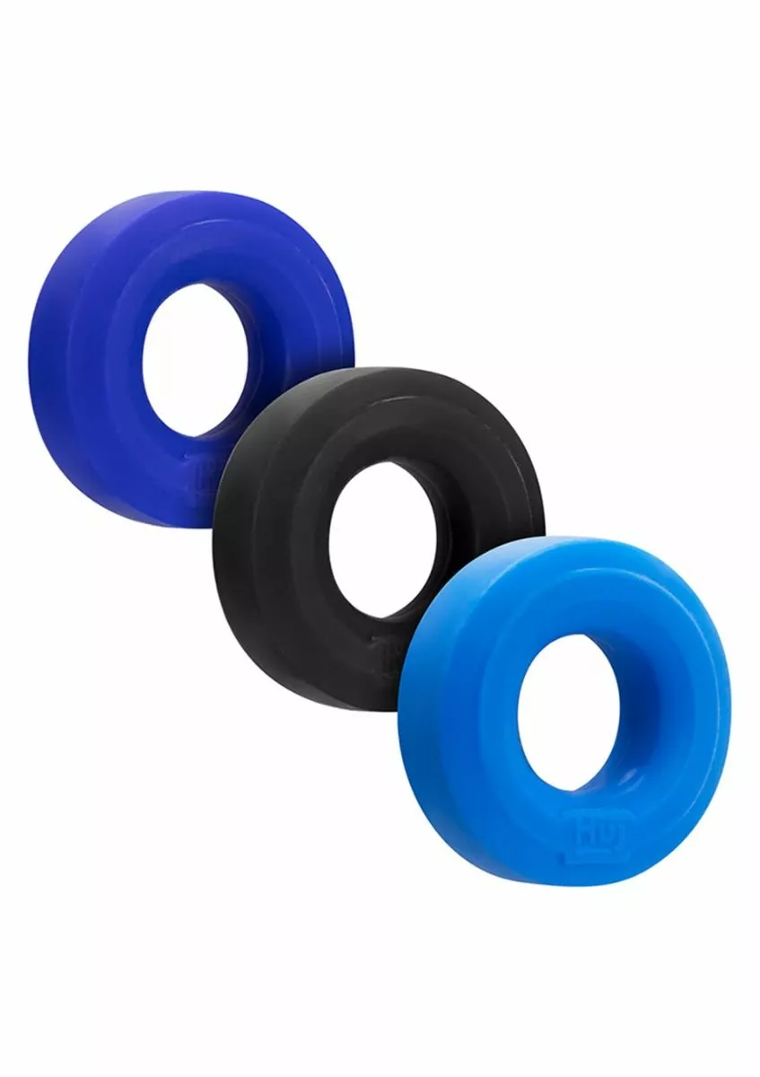 De Hunkyjunk set cockringen is gemaakt van een mix TPR en zacht siliconen. Door de rekbaarheid is deze set de perfecte cockring of balring. Het materiaal voelt zacht en soepel aan. In deze set zitten drie cockringen een zwarte, licht blauwe en een donkerblauwe.
