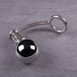 Zeer zware cockring in combinatie met een anaalplug in de vorm van een bal. Gemaakt van roestvrij staal. Een echte aanrader voor de liefhebber van het extreme werk. De bal is te verwisselen zodat er een grotere of kleinere bal op kan worden geplaatst. Bevestigd op een extra dikke houder (diameter 2,5 centimeter) wat het geheel nog wat zwaarder maakt.