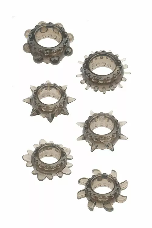 Deze unieke set van 6 rekbare cockringen mag niet ontbreken in je toy collectie. Ze hebben alle 6 dezelfde afmetingen maar ieder een andere vorm. Ze vergroten tot wel 4 keer hun diameter zodat hij perfect om elke penis heen zal passen. Draag ze solo of gecombineerd voor een pittige stretch en hou je stijve lul heel de nacht omhoog. Naast dat hij in perfecte stijfheid zal blijven zal hij ook het orgasme uitstellen zodat jij en je partner extra lang van elkaar kunnen genieten. In de verpakking zitten 6 stuks dus jij hebt altijd wel eentje op voorraad.