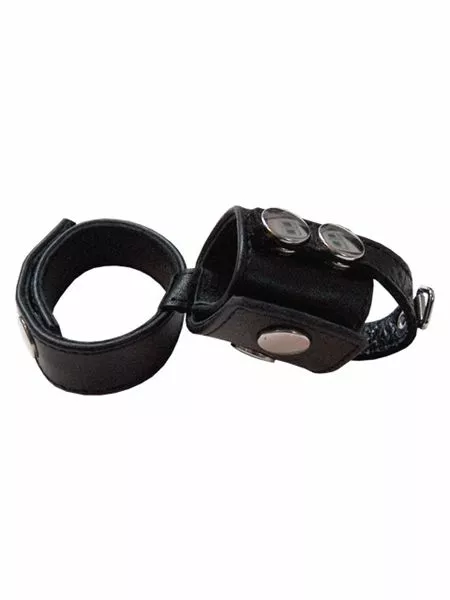 Deze Mister B Dubbele Cockstrap met Bal Spreider is verstelbaar met drukknopen. De lange riem is bedoeld om achter je ballen te dragen en zowel je lul als ballen bij elkaar te grijpen. De tweede bredere riem van de Mister B Dubbele Cockstrap met Bal Spreider is een ballstretcher en heeft een extra riem om de ballen te scheiden.