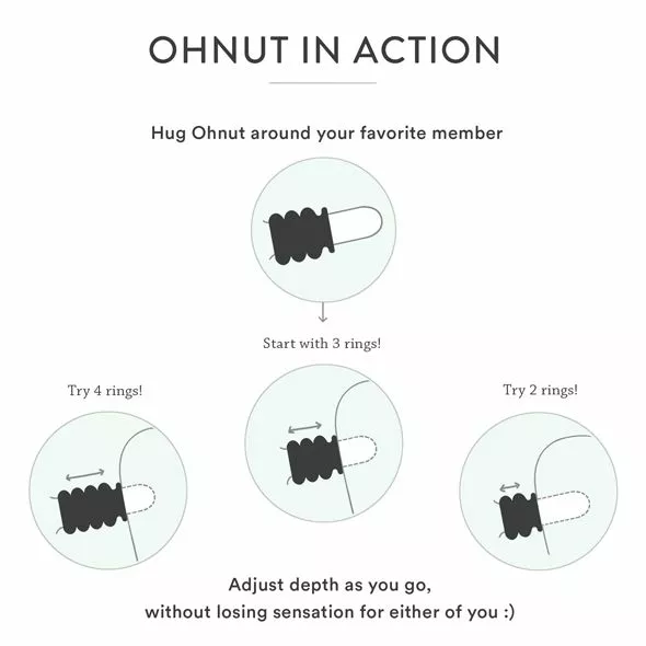 De Ohnut wordt geleverd in een set van 4. Elke Ohnut heeft zijn eigen dikte en diameter zodat je zelf kan uitzoeken welke ring het beste bij jou of jullie passen. De ringen functioneren als een buffer om de heftigheid van penetratie op te vangen. De man kan harder stoten waardoor zijn partner het als minder pijnlijk zal ervaren omdat de Ohnut ring tussen beide partners inzit. Gelukkig voelt de ring aan als een tweede huid dus voelt het alsof er niks tussen jullie inzit.