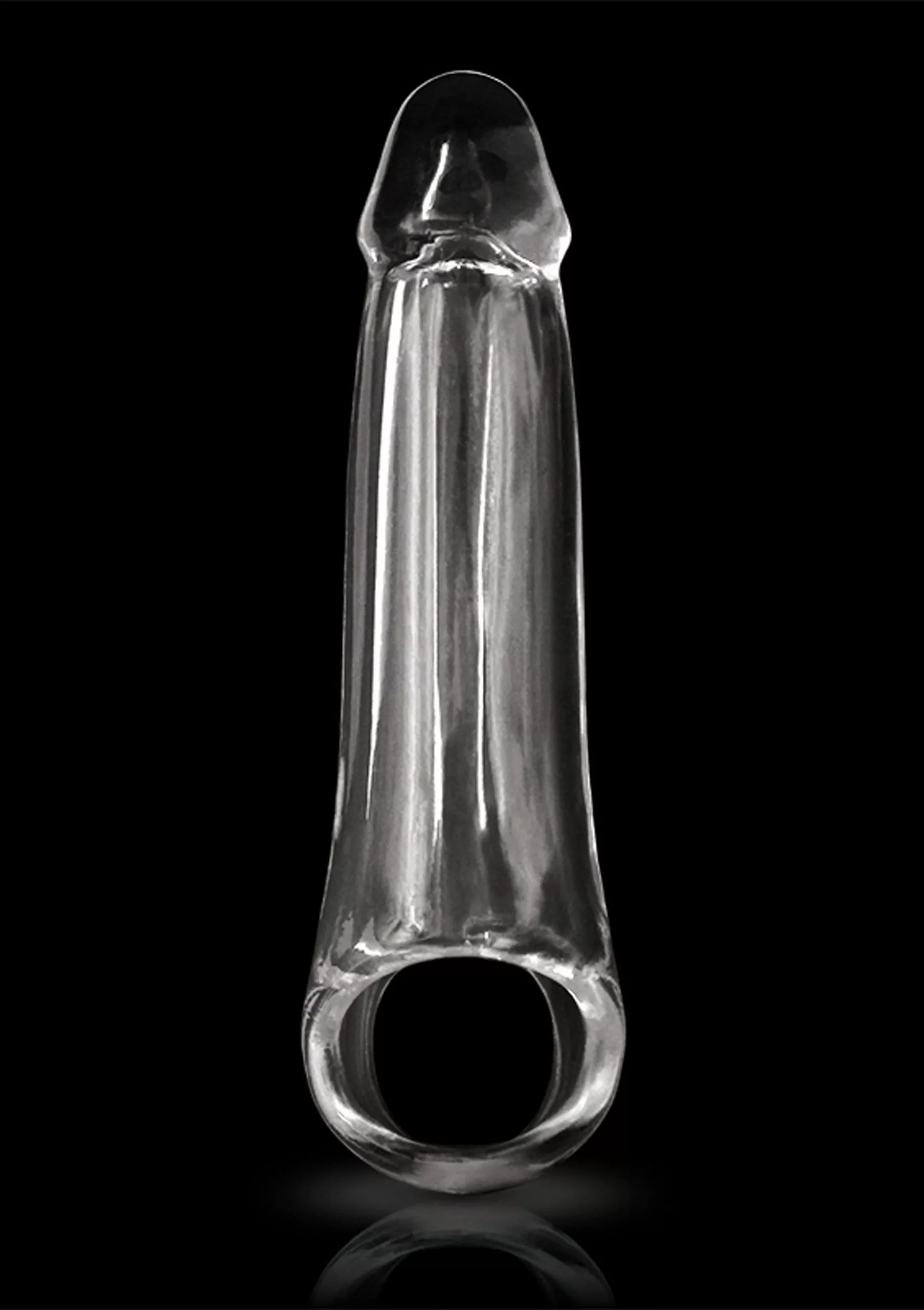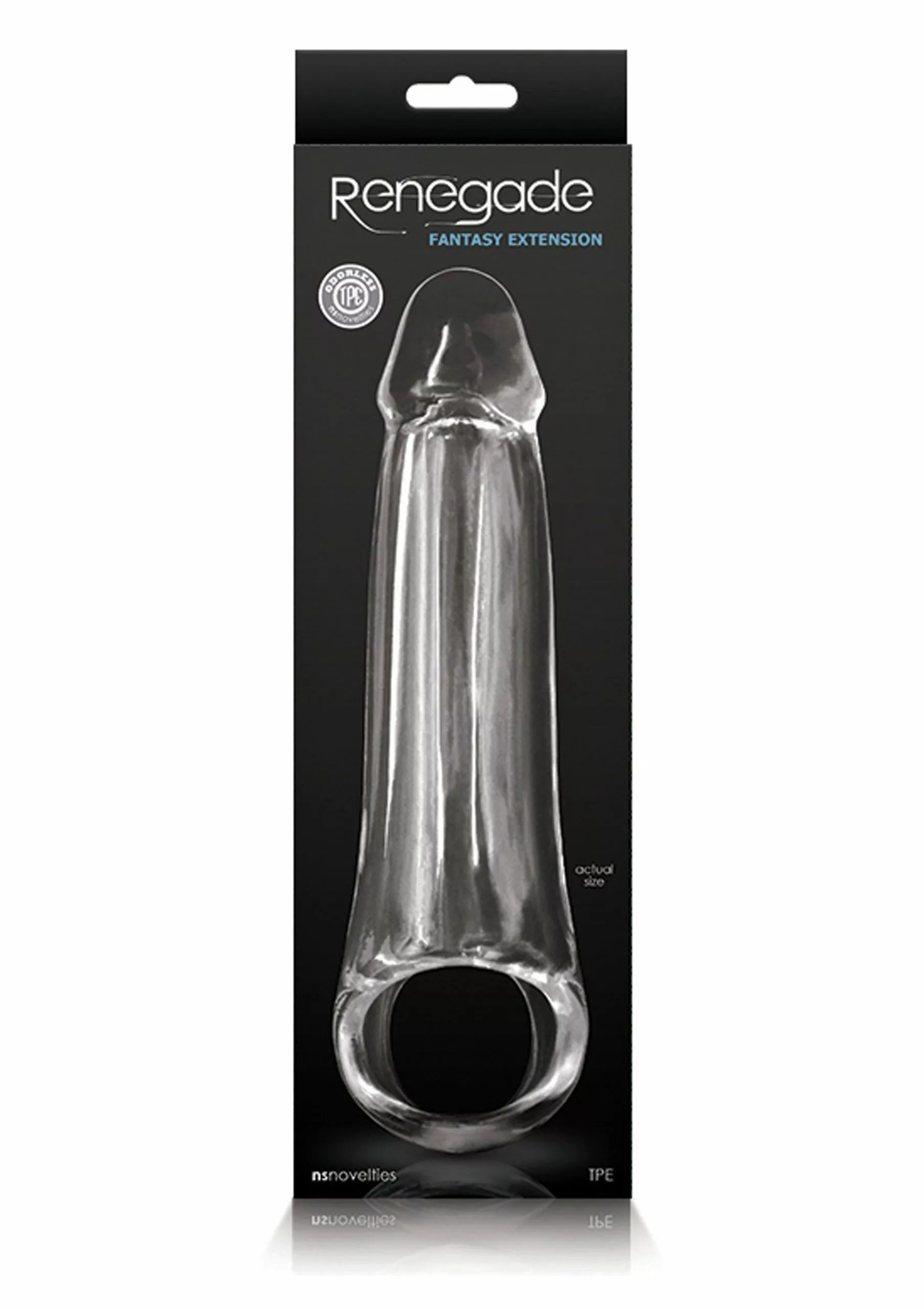 Op zoek naar een penis sleeve die comfortabel zit en voor extra verlenging zorgt? De Fantasy Extension L penis sleeve van Renegade heeft alles wat je nodig hebt voor nachtenlang plezier. De penis sleeve is gemaakt van transparant TPE materiaal, waardoor je alle actie goed in de gaten kunt blijven houden. De sleeve heeft een lengte van ruim 23.30 cm en een diameter van 5,5 cm tot 6 cm. Het materiaal voelt prettig aan op de huid en kan gebruikt worden in combinatie met glijmiddel op waterbasis. De bal strap aan de onderkant zorgt ervoor dat de Fantasy Extension penis sleeve goed blijft zitten, zelfs wanneer het er ruig aan toe gaat. Maak na gebruik eenvoudig schoon met water en toycleaner.
