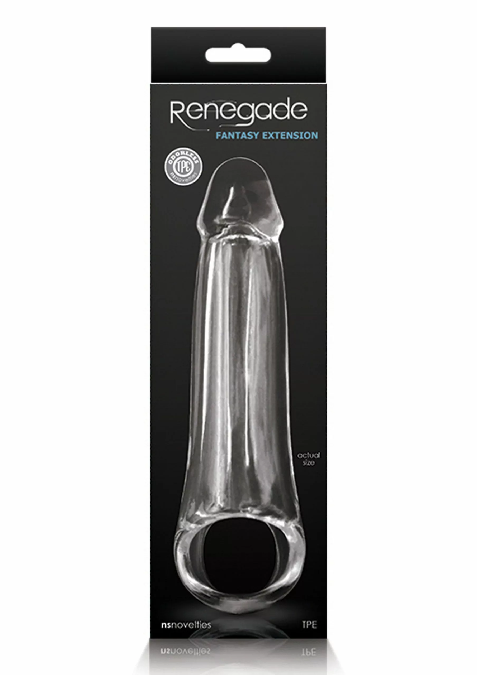Op zoek naar een penis sleeve die comfortabel zit en voor extra verlenging zorgt? De Fantasy Extension M penis sleeve van Renegade heeft alles wat je nodig hebt voor nachtenlang plezier. De penis sleeve is gemaakt van transparant TPE materiaal, waardoor je alle actie goed in de gaten kunt blijven houden. De sleeve heeft een lengte van ruim 23 cm en een diameter van 5,5 cm. Het materiaal voelt prettig aan op de huid en kan gebruikt worden in combinatie met glijmiddel op waterbasis. De bal strap aan de onderkant zorgt ervoor dat de Fantasy Extension penis sleeve goed blijft zitten, zelfs wanneer het er ruig aan toe gaat. Maak na gebruik eenvoudig schoon met water en toycleaner.