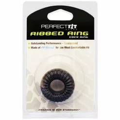 De geribbelde penisring van het merk Perfect Fit is een geweldige elastische penisring, die om de penis van elke man heen past. De ring is heel eenvoudig op te rekken en om je penis en scrotum te plaatsen. De ring is zeer comfortabel om voor langere tijd te dragen. Veilig met alle soorten glijmiddelen. Niet geschikt om met latex (condooms) te gebruiken. Dit stoere design is voor de stoere man die graag wil genieten van een lange en stevige erectie.
