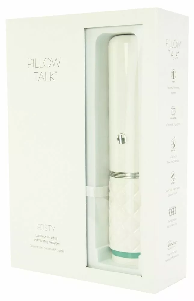 De Stotende vibrator Feisty Blauw van Pillow Talk stoot krachtig keer op keer en heeft lekkere vibratiestanden. Twee stuwkracht snelheden en drie dynamische functies van trillingen zijn eenvoudig te bedienen met een druk op de knop onder de handige handgreep.