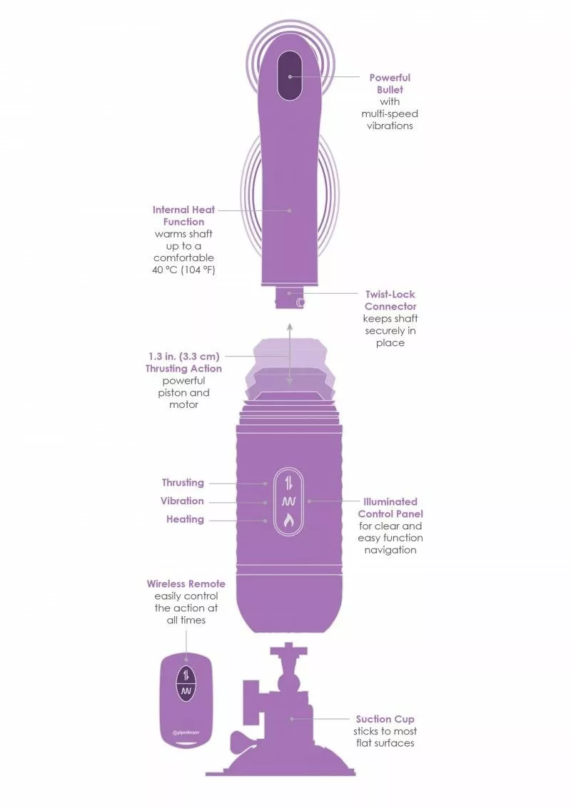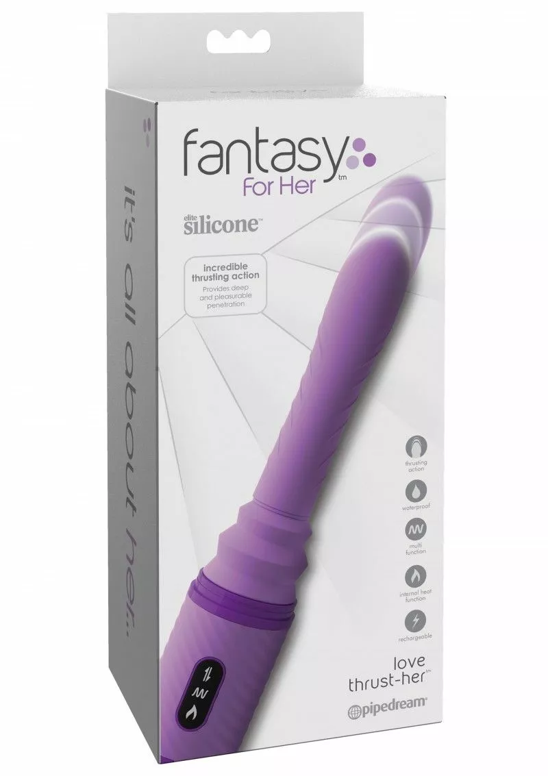 De Love Thrust Her heeft meerdere functies voor een optimale stimulatie. De verschillende delen zijn uit elkaar te draaien, waardoor je de vibrator gemakkelijk mee kan nemen en eenvoudig op kan bergen. De Vibrator vibreert en stoot krachtig, je kan kiezen voor de verwarmingsfunctie en uit wel 14 vibratiestanden . De schacht worden opgewarmd tot 40°C. Met de afstandsbediening, en ook met de pushbuttons op het control panel, bedien je alle functies snel en gemakkelijk. Aan de onderkant van de toy vind je een sterke zuignap waarmee je de vibrator op elk glad en vlak oppervlak kan bevestigen.