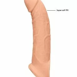 Deze geweldige Penis Sleeve 9 inch van RealRock heeft realistische vormen. De sleeve heeft een geaderde schacht en een mooie levensechte eikel. Hij is gemaakt van TPE materiaal wat net aanvoelt als echt huid. Door deze sleeve zal jouw penis dikker en langer worden.