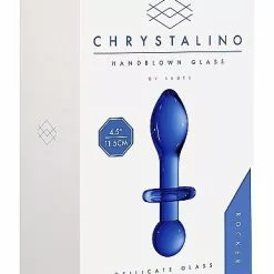 Deze bijzondere buttplug is gemaakt van glas. Het glas is transparant en heeft een mooie diepblauwe kleur. De handgemaakte Rocker butt plug is niet alleen heerlijk in gebruik, maar ziet er ook prachtig uit. Geniet stijlvol van elk anaal spelletje dat je maar wilt spelen. De ronde bolling zorgt voor zeer prettige anale stimulatie en de vlakke basis houdt deze toy keurig op zijn plek. Houd de buttplug onder lauw of koud water en het premium borosilicaat-materiaal zal opwarmen of afkoelen voor spannende spelletjes op de juiste temperatuur. Na gebruik kun je de Rocker butt plug dankzij zijn gladde materiaal zeer makkelijk reinigen. Deze glazen Chrystalino butt plug is onbreekbaar en bodysafe.