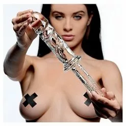 Deze kromme dildo zal heerlijk je p-spot stimuleren. Hij zal in een golvende beweging bij jou naar binnen glijden en dit zal een bijzonder heerlijke ervaring geven. De brede basis zorgt ervoor dat de dildo veilig op zijn plek blijft zitten. Deze handgemaakte glazen dildo is ontworpen voor lekkere anale en vaginale spelletjes. Tevens kan jij de toy gebruiken voor temperature play. Doordat de toy van glas is gemaakt zal het zich snel naar temperatuur aanpassen. Bijvoorbeeld, voor een hete sensatie laat je hem even onder de hete kraan stromen en voor een koude verrassing stop je hem enkele minuten in de vriezer. De schitterende glazen dildo’s zijn onbreekbaar, bodysafe en waterproof voor levenslang plezier.
