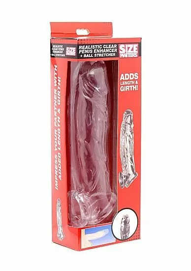 Zorg voor extra lengte en een intiemere seksbeleving met deze realistische penis verlenger met ballstretcher van het merk Size Matters. De penis sleeve zorgt niet alleen voor meer lengte, wat vooral voor je partner heel prettig is, maar zorgt ook voor een lekker trekkend gevoel aan je ballen. De transparante sleeve is gemaakt van zacht TPE materiaal en de geaderde schacht en dikke eikel zorgen voor optimale stimulatie van je partner. De ballstretcher brengt sensationele gevoelens teweeg en zorgt ervoor dat deze verlengende penissleeve zelfs tijdens de meeste ruige sessies goed blijft zitten. Dankzij het transparante materiaal kun je alle actie goed in de gaten hoduen. Deze Size Matters penis sleeve is bodysafe en waterproof. Maak hem na gebruik makkelijk schoon met water en toycleaner.
