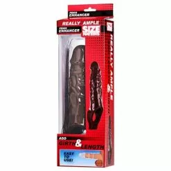 Verleng je lengte en verhoog je omvang met de Really Ample Penissleeve – Bruin voor jezelf of voor je partner. De sleeve is gemaakt van rekbaar tpr materiaal en is dus rekbaar genoeg om over elke penis heen te ttrekken. Je plaatst eenvoudig weg de penissleeve over je stijve lul heen en plaatst de ring achter je testikels, hierdoor geniet ook jij van een heerlijk strak gevoel wat de erectie verhoogd. Zowel de binnenkant en de buitenkant is voorzien van respectievelijk noppen en ribbels zodat jij en je partner beide kunnen genieten van extra stimulans. Maak na elk gebruik schoon onder de kraan met een milde zeep en een toycleaner.