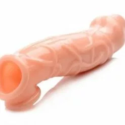 Zorg voor extra lengte en een intiemere seksbeleving tegelijkertijd met deze huidskleurige verlengende penis sleeve van het merk Size Matters. De penissleeve heeft een lengte van maar 22.90 cm, waarvan 15.90 cm in te brengen is. De huidskleurige penissleeve is gemaakt van heerlijk zacht TPR materiaal en de geaderde schacht en dikke eikel zorgen voor optimale stimulatie van je partner. De cock- en balring zorgen ervoor dat jij een heerlijk strak gevoel ervaart en dat de penis sleeve zelfs tijdens de meeste ruige sessies goed blijft zitten. Ideaal voor koppels die op zoek zijn naar nƩt dat beetje extra tussen de lakens! Deze Size Matters penis sleeve is bodysafe en waterproof. Maak hem na gebruik makkelijk schoon met water en toycleaner.