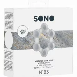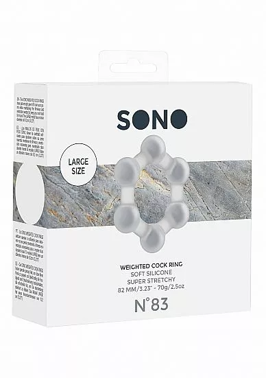 Wanneer je regelmatig gebruik maakt van een cockring, zal deze rekbare cockring met gewicht No. 83 van het merk Sono je toch weten te verrassen met nieuwe, opwindende sensaties. De No. 83 Sono cockring is gemaakt van transparant siliconen. Dit materiaal voelt niet alleen zacht aan op huid, maar is ook zeer rekbaar en kan gebruikt worden in combinatie met glijmiddel op waterbasis. Het gewicht van 70 gram en de verdikkingen rondom de cockring zorgen voor een sensationeel gevoel. Je kunt de cockring zowel om je penis als om je balzak dragen. Het gebruik van een cockring zorgt voor een hardere en langer aanhoudende erectie. Maak de Sono No. 83 na gebruik eenvoudig weer schoon met water en toycleaner.