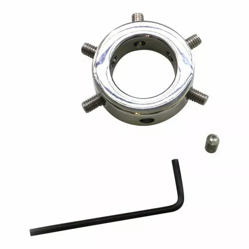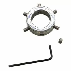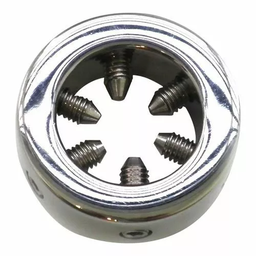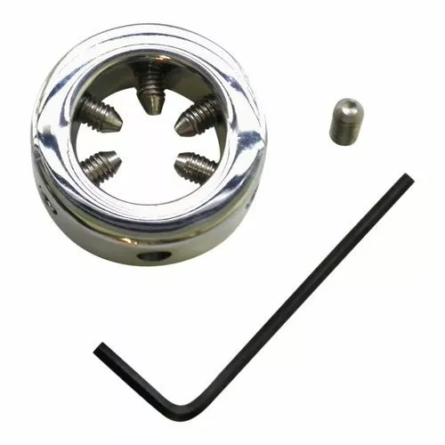 Metalen penisring met spikes welke indraaibaar zijn met de meegeleverde inbussleutel. Draag de penisring en laat je partner bepalen hoe strak deze komt te zitten! Zeer spannend om te dragen in de slaapkamer, voor degene die houden van de wat extremere sessies!