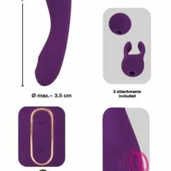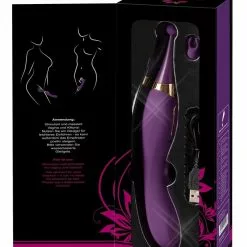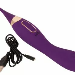 De Vibrator 2 in 1 van het merk Javida is een geweldige vibrator voor gerichte genotspunt stimulatie en volledige lichaams- of intieme massages. Een zijde heeft een kleine kogelkop en twee verwisselbare opzetstukken met tintelende vibraties in 10 standen. De andere zijde een vibrator met kloppende-pulserende tikfunctie in eveneens 10 standen. Wanneer de vibrator leeg is laad je hem gemakkelijk op met de meegeleverde USB oplaadkabel.