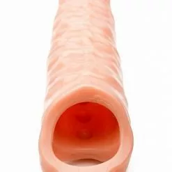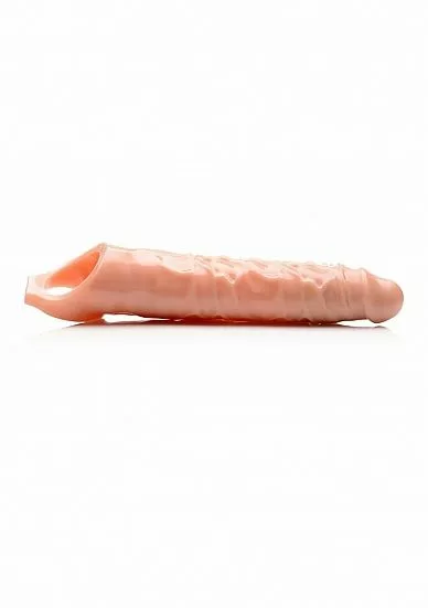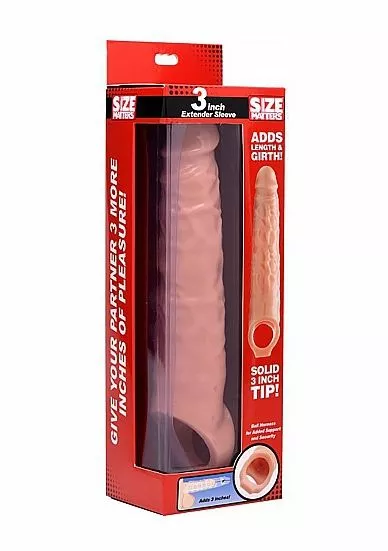 Zorg op een snelle en makkelijke wijze voor meer lente en meer omvang met deze huidskleur realistische penis sleeve van Size Matters. De sleeve is gemaakt van zacht TPR materiaal en heeft de levensechte kenmerken van een echte penis. Zo is deze penissleeve voorzien van een realistische eikel en geaderde schacht die voor optimale stimulatie tijdens penetratie zullen zorgen. De sleeve heeft een lengte van 27.30 cm (waarvan 14 cm inbrengbaar) en een binnendiameter van 3.70 cm. Breng je penis in de sleeve naar binnen en trek de ring rond je scrotum. Dankzij de ring rondom je scrotum ervaar je een heerlijk strak gevoel en hij zorgt er tevens voor datde zaadlozing uitgesteld wordt waardoor jullie samen langer kunnen genieten van een intense vrijpartij.