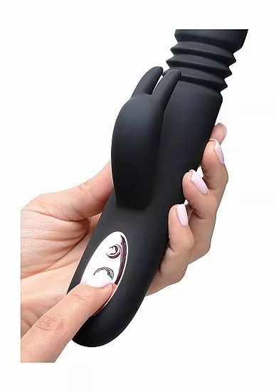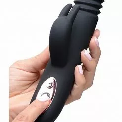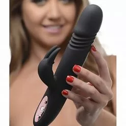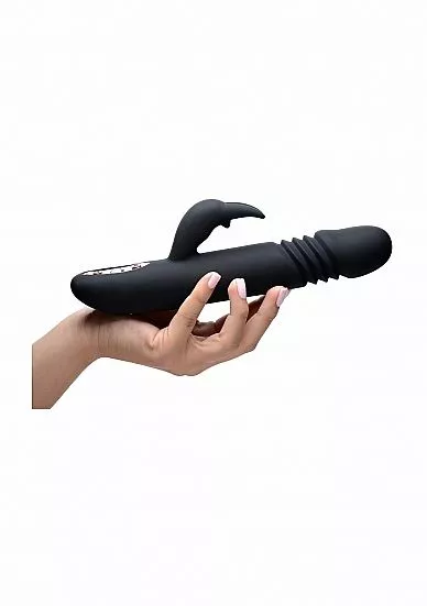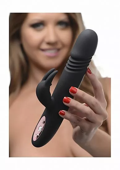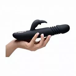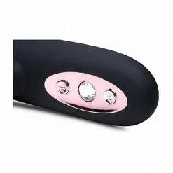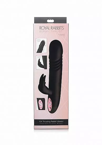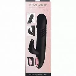 Laat je man maar thuis en neem de Stotende Rabbit Vibrator Royal Rabbits – Zwart mee op vakantie. Deze unieke toy is een portable sex machine die jij overal mee naar toe kan nemen voor een onvergetelijk avontuur. Jouw erotische verlangens komen uit met deze luxe vibrator die het aan niks zal ontbreken. De vibrator heeft 7 stotende standen terwijl de clitoris stimulator in de vorm van een konijn in 3 diverse standjes tegen je clitoris zal vibreren voo reen heerlijke dubbele sensatie. De geribbelde schacht zal heerlijk stotend langs de wand van je vagina glijden terwijl jij kreunend van genot klaar komt. De luxe toy is magnetisch oplaadbaar met het meegeleverde usb kabeltje voor elk volgend avontuur. Het elegante push button systeem is makkelijk in gebruik en het schitterende steentje licht op terwijl die aanstaat. Om jouw Stotende Rabbit Vibrator Royal Rabbits – Zwart mooi te houden gebruik jij enkel een glijmiddel op waterbasis in combinatie met deze toy. En na gebruik reinig jij hem makkelijk met een milde zeep en een zachte toycleaner. Droog het altijd goed af voor jij hem opbergt.