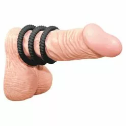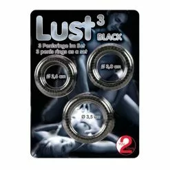 Geniet nu van de Lust – 3 Penis ringen. Dit is een set van 3 geribbelde zwarte penisringen met verschillende diameters (2,6, 3,0 & 3,5 cm). Ringdikte elk 7 mm. Deze zijn ook ideaal om de testikels mee in te snoeren. Materiaal: Siliconen.