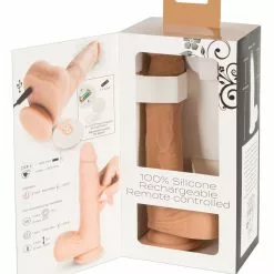 Laat je verwennen door de Stotende Dildo met Afstandsbediening Huidskleur van You2Toys. Deze dildo heeft niet alleen een realistische look maar zal, wanneer jij het gebruikt ook aanvoelen alsof jij wordt genomen door een echte lul. De dildo heeft namelijk een stotende functie die jij met de compacte ronde afstandsbediening kan bedienen. Het heeft een stoot lengte van 3 centimeter en de dildo stoot in 5 verschillende standen. Daarnaast kan jij genieten van 7 vibratie standen die elk een unieke sensatie zullen brengen. Ook is de stotende dildo uitgerust met een memory functie. Zo zal je favoriete stoot en vibratie standje altijd binnen handbereik zijn. De geaderde schacht is als een echt huidje los te trekken voor een levensecht gevoel. Voor een handsfree sessie gebruik jij de sterke zuignap van de Stotende Dildo. Zet het vast op elk glad en vetvrij oppervlak. Na gebruik kan jij de toy opladen met het meegeleverde usb kabeltje.