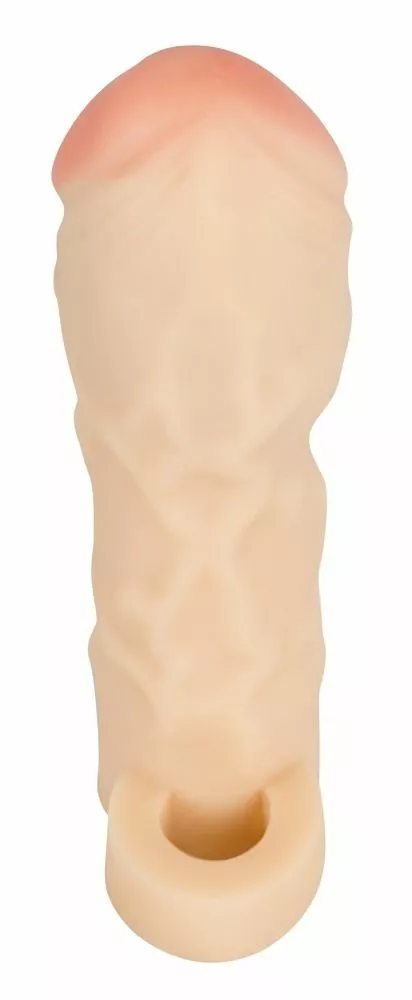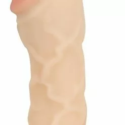 Breng wat extra lengte en omvang toe aan je penis en verwen je partner op een heerlijke manier met een wat meer gevulde vagina. Hier zat ze al zolang op te wachten, en dit kan jij haar nu eindelijk bieden met de verlengende huidkleurige penissleeve met bal ring. Hij verlengt met maar liefst 5 centimeters en zal een extra omvang hebben van 2 centimeters. Het heerlijke materiaal zal aanvoelen als levensecht dus je partner zal niet het gevoel hebben dat ze genept wordt. Aan de onderkant zit een ring voor om de ballen, dit geeft een heerlijk opgewonden gevoel aan de ballen maar zorgt er ook voor dat hij zelfs een hele wilde sessie goed blijft zitten. De levensechte eikel en geaderde schacht maken het voor het oog af.